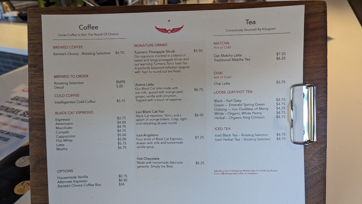 Intelligentsia Coffee Broadway Coffeebar Menu